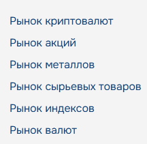 Каждая страница представляет свои преимущества торговлей тем или иным активом, перечень компаний, которые определяют направление межбанка, а также определение и краткое описание, но все эти шесть рынков объединяют типы счетов, позволяющих совершать сделки с отдельными пакетами бонусов: