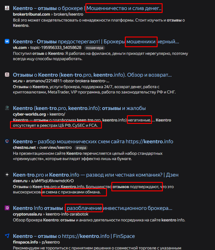- KeenTro не имеет подтверждённых данных о регистрации у заявленных регуляторов, что указывает на высокие риски для средств инвесторов;