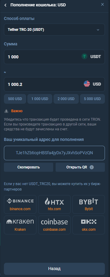 - «Trader» – за внесение $1,000 клиент получает аккаунт, где менеджеры вправе страховать депозиты на рынке криптовалют;