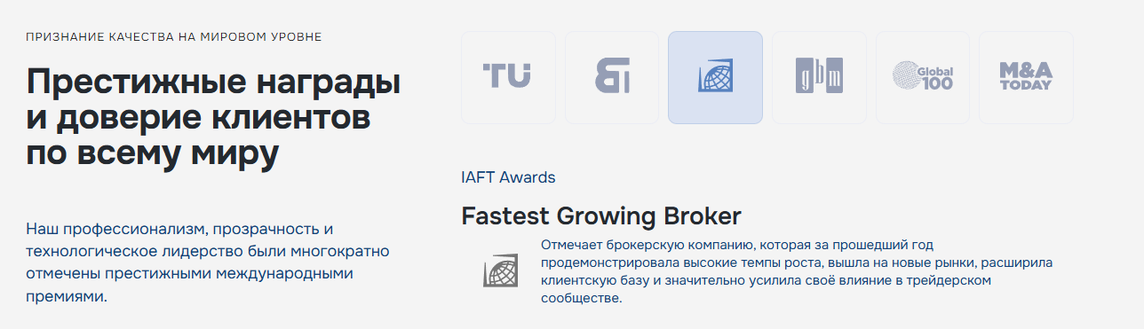 Среди наград сообщества биржевик выделяет шесть самых важных, из которых четыре за качество от таких издательств, как: «Trades Union Awards», «Business Tabloid Awards», «Global Brands Magazine» и «Global 100 Awards».