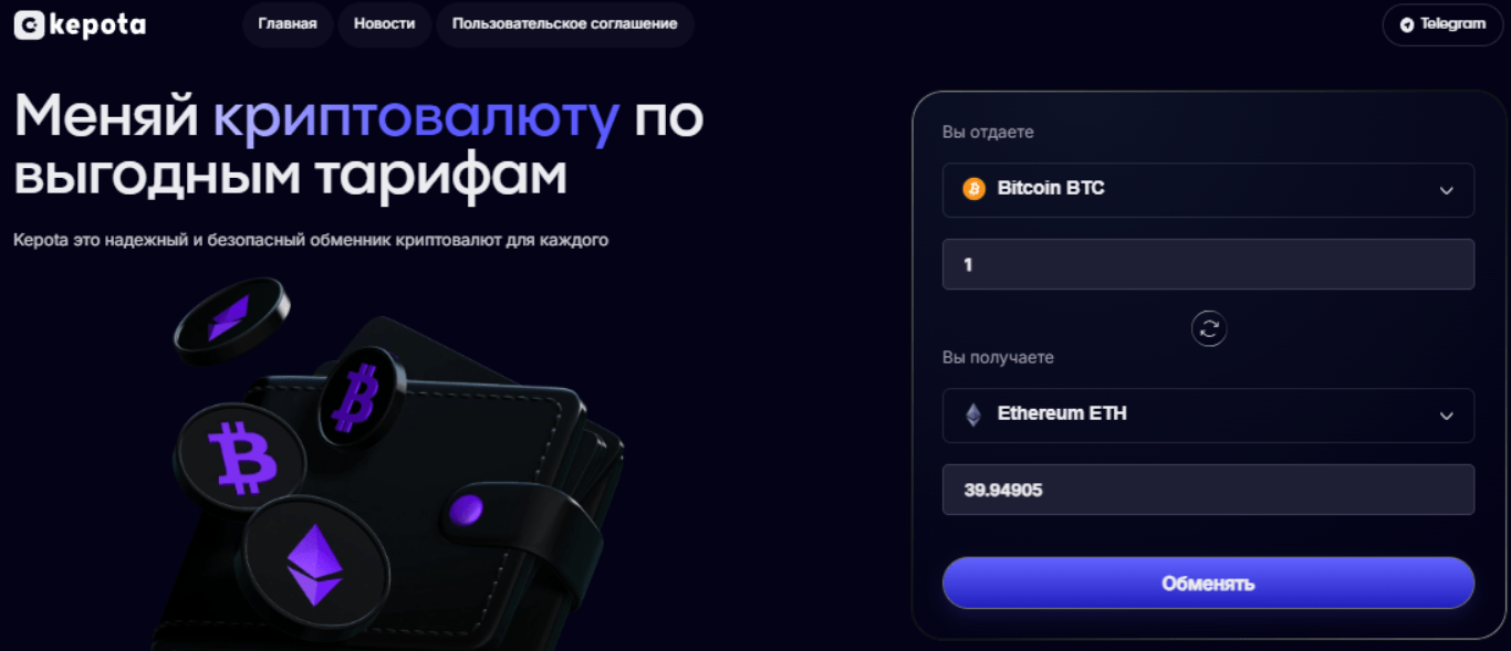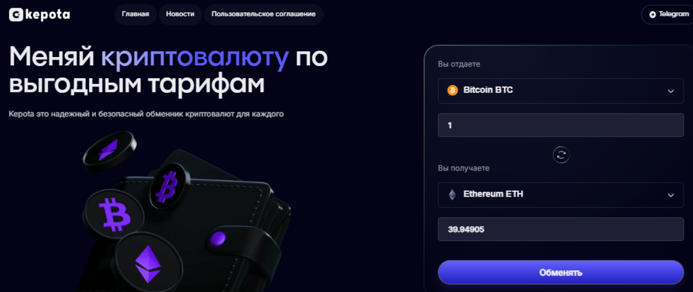 До своей блокировки криптовалютный обменник Kepota com позволял клиентам менять популярные криптовалюты и заявлял о выгодных тарифах на своей платформе. Создатели площадки называли проект надежный и безопасным, доступным для любого пользователя.