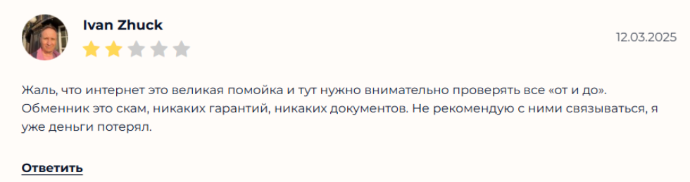 Из-за отсутствия хоть каких-то документов и гарантий у обменника его считают настоящим скамом с которым нельзя связываться.