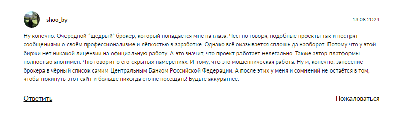 Разводняк, что лапшу на уши вешает. Распинаются, мол, «опытные», «надёжные», а по факту — фиг знает кто эти типы вообще. Залил туда денег, а потом хоть плачь — ни поддержки, ни вывода, ни профита. Кидалово!