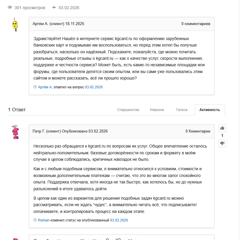 Оценить, участвуют в переписке реальные пользователи или боты – технически невозможно. Но есть благодарности от клиентов, которые уже получили карту и успешно пользуются пластиком.