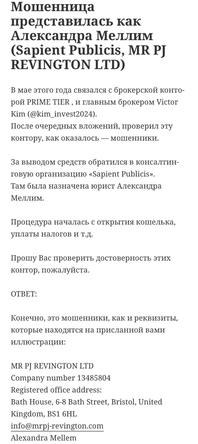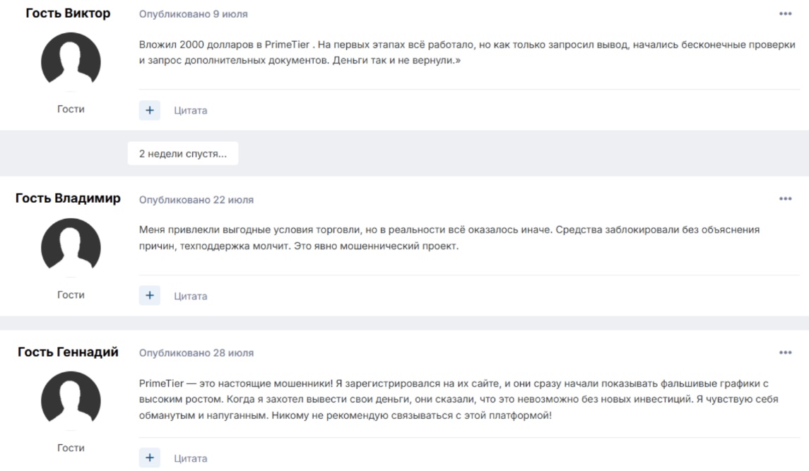 Что касается Prime Tier — конторы, где он работает — то тут стандартная жалоба на непроверенного брокера. Клиенты утверждают, что компания просто лишила их доступа ко вложенным средствам.
