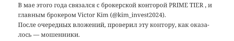 Сегодняшний обзор начнется с пользовательского комментария, где фигурирует некий Victor Kim — как известно, одно из ключевых лиц брокерской конторы Prime Tier.