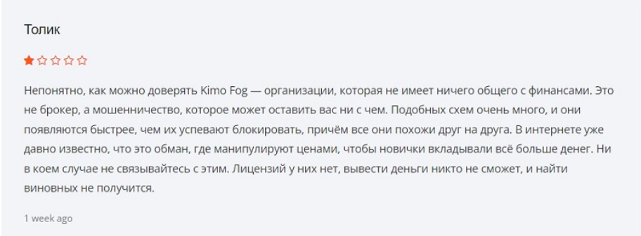 Признаки мошенничества брокера Kimo Fog Co