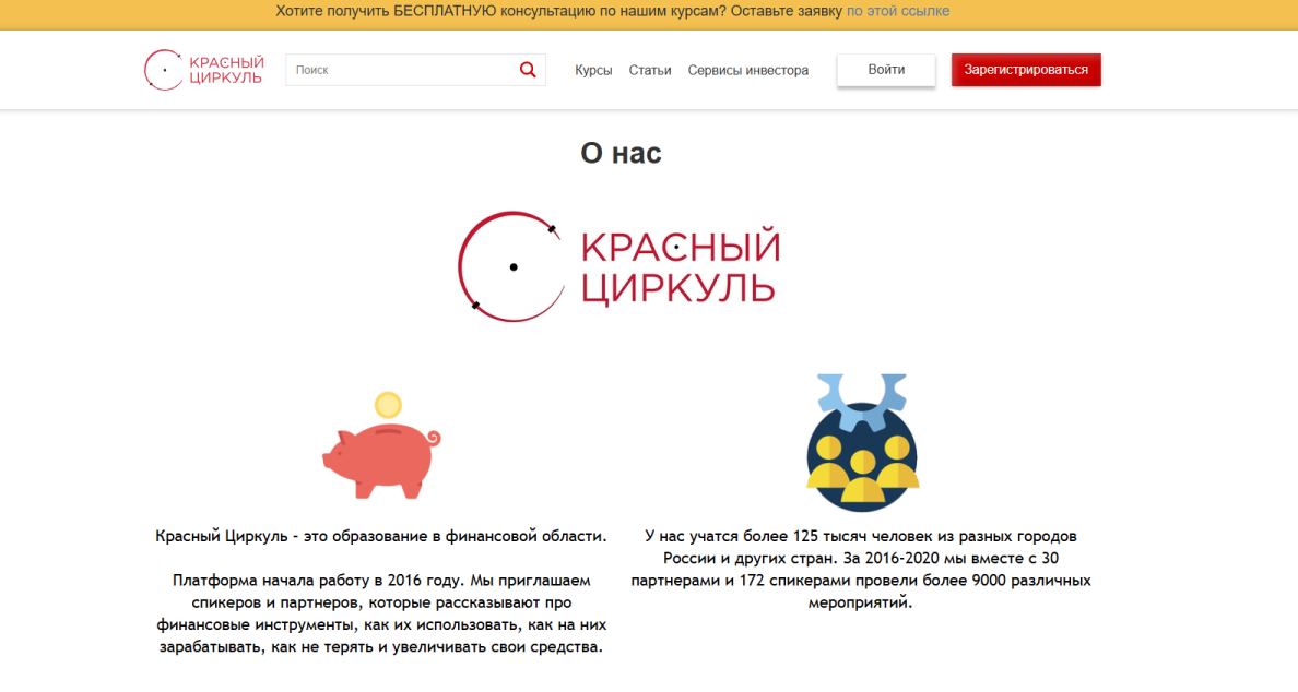 Красный Циркуль — это образовательная платформа, которая предлагает бесплатные, а также платные курсы и вебинары по финансовой грамотности. Пользователям обещают качественную поддержку от экспертов, а также возможность воспользоваться дополнительными бонусами. По словам создателей, у школы более 125 тысяч учеников, которым удается улучшить навыки инвестирования и трейдинга с помощью обучения, но в обзоре мы расскажем о проекте всю правду.