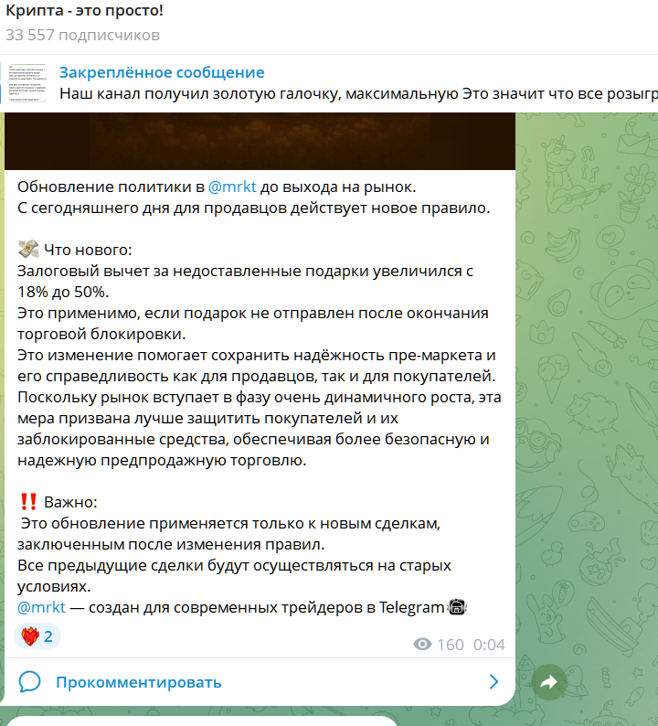 Монетизация проекта «Крипта это просто» основана на привлечении рефералов. В последнее время трейдер активно продвигает сомнительный бот MRKT по торговле NFT.