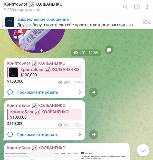 Известный проект в Телеграмме «Криптоблог Колбаненко» посвящен обучениям заработку на финансовых инвестициях. Инвестор предлагает пользователям разные инструменты, которые помогут покупать и продавать криптовалюту на рынке. Опытный и профессиональный трейдер утверждает, что его торговые сигналы принесут прибыль ученикам. Администратор одноименного канала уверяет, что его методы работают, и он обещает обучить каждого.