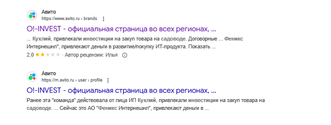 Выйти на аферистов помог всего один отзыв, который не был удален системой с сайта «Авито» при закрытии позиций, выставленных на продажу компанией O Invest.