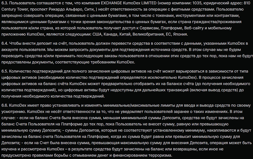 Подтверждения этому найдены в Eula, где прописан отказ от любых типов ответственности и в максимально путаной форме.Лицензии и документация биржи «КумоДекс»