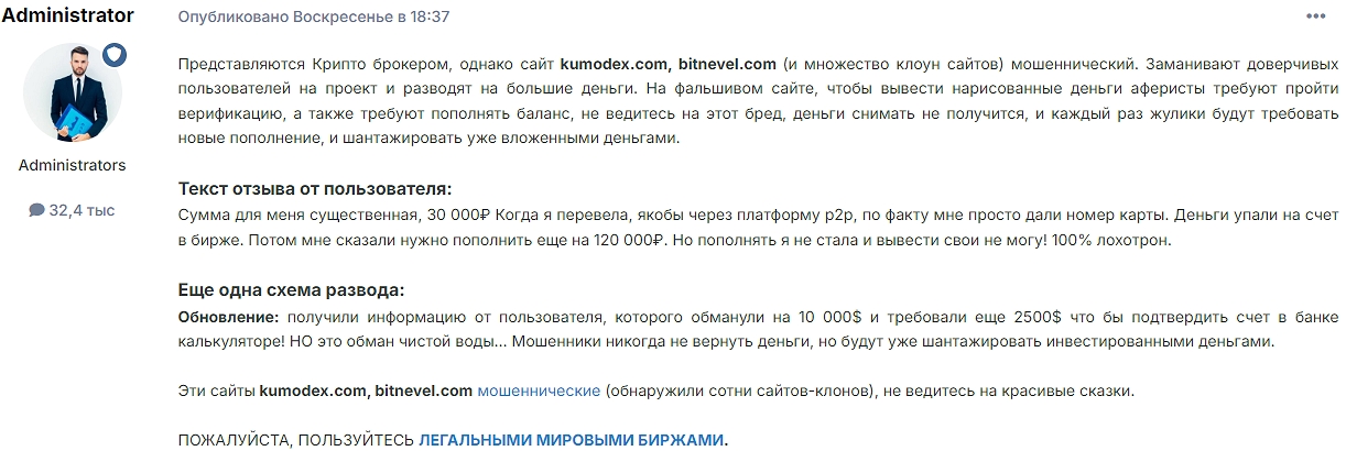 На форумах среди аналогов портала «КумоДекс ком» упоминают ресурсы Bitrelu com и Bitnevex com. Первый недоступен для посещения из РФ, а структура второго и услуги создателей в целом повторяют таковые для анализируемого портала.