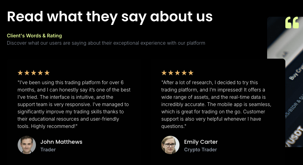 На самом сайте брокера есть блок с отзывами. Все они положительные. Однако, похоже, что данные ревью размещены самими создателями ресурса.