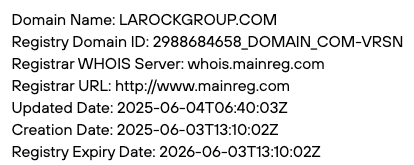 Показатель того, что платформа надежная и безопасная — это длительное время ее существования. Поэтому с целью выяснить, когда брокер Larock Group заработал, мы запросили данные домена его сайта из WHOIS.