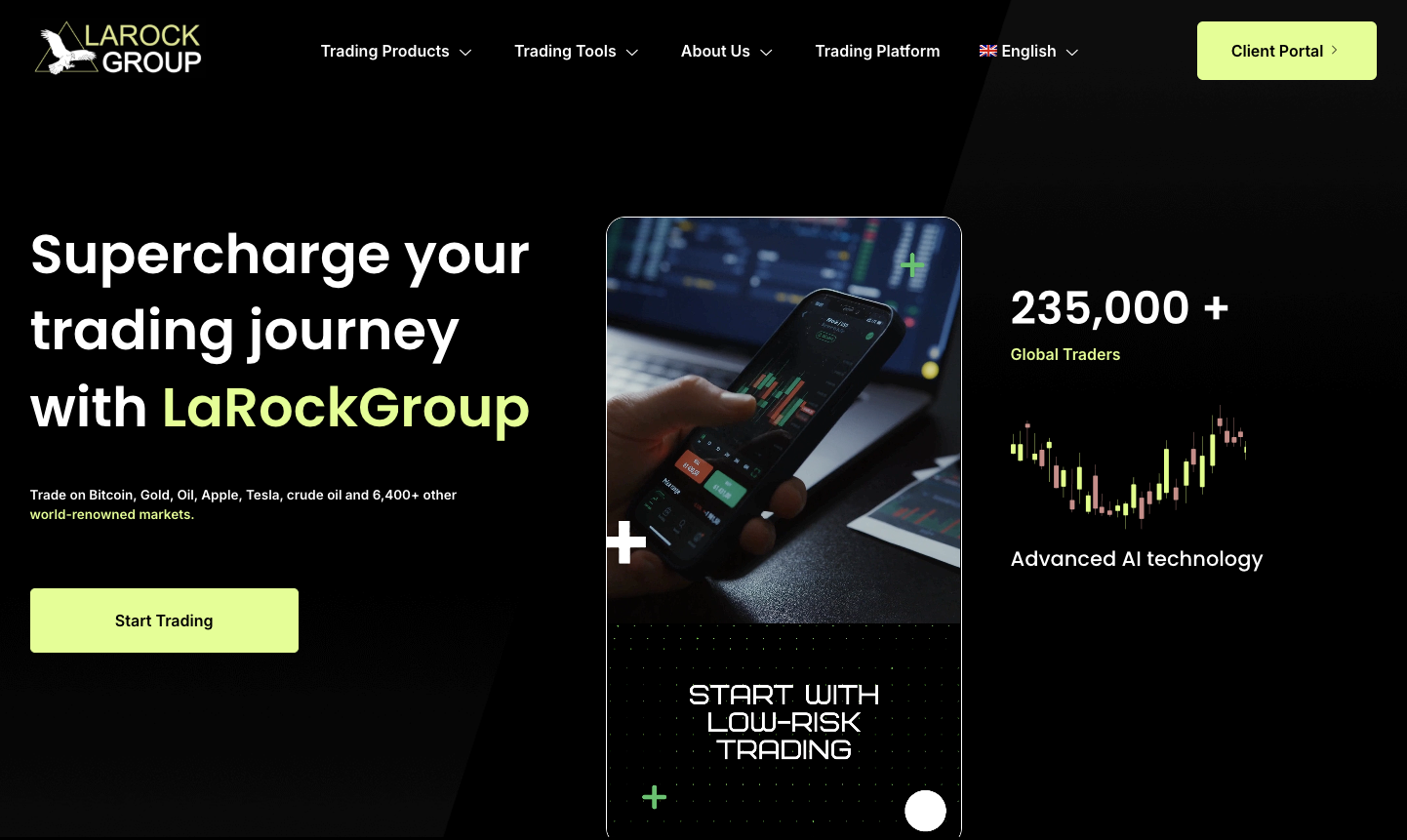 Larock Group — сайт, на котором предлагают торговать более чем 4,5 тысячами видами активов. На нем заявлено, что с системой работает свыше 250 тысяч трейдеров.