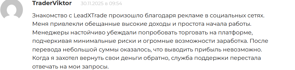 В сети не очень много комментариев о бирже, но существуют различные негативные отзывы о LeadxTrade Pro. Там пишут о том, что вывести свои деньги с проекта нельзя. Авторы рекламируют проект за счет высоких доходов и простого начала работы, но когда дело доходит до вывода, техподдержка просто перестает отвечать на запросы.