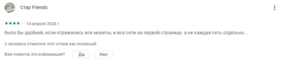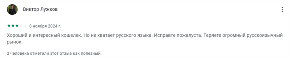 В ряде отзывов о приложении кошелька клиенты пишут, что разработчикам стоит добавить некоторые функции и внедрить русский язык.