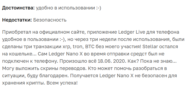 Мы рекомендуем с осторожностью использовать крипто-кошелек, поскольку далеко не все клиенты платформы оставались ей довольны, а некоторые покупатели криптовалютного кошелька «Леджер ком» даже оставались без денег на счету, что приводило к большим убыткам.