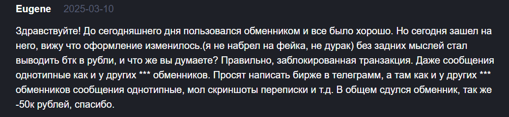 - Обменник имеет несколько положительных отзывов, но отрицательных больше, следовательно, его репутация скорее негативная.