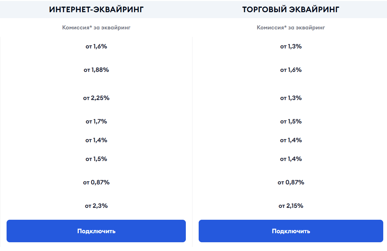 Цены зависят от продукта, так как предлагают кассовый софт, облачную кассу и эквайринг, например, комиссии за транзакции составляют от 0.87% до 2.3%.