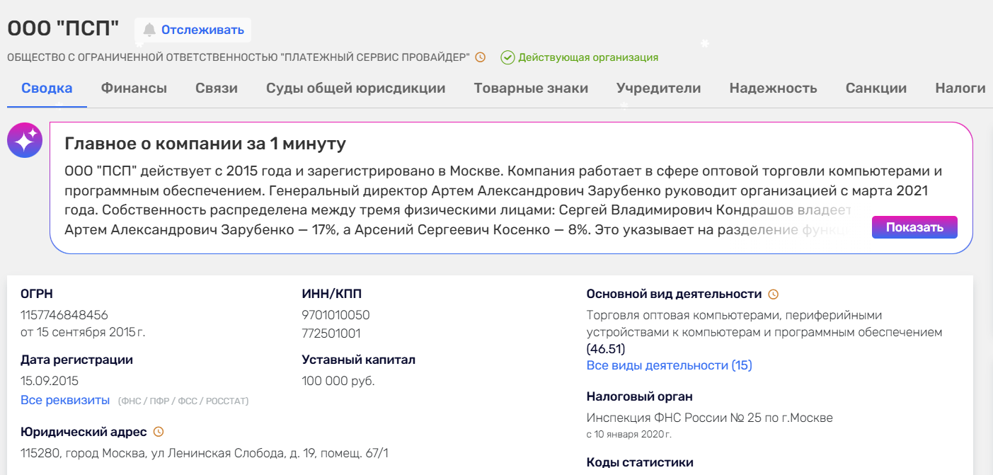 Сервис предлагает набор различных решений, которые позволяют не только принимать платежи, но и автоматизировать бизнес. Основателями проекта выступают сразу несколько человек, но основным владельцем считается Сергей Кондрашов, а компания официально зарегистрирована как ООО «Псп» с 2016 года.