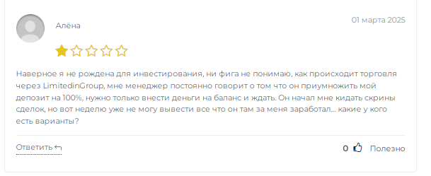 Отзывы трейдеров о работе с LimitedinGroup