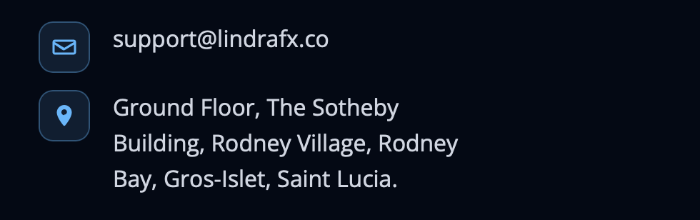 Для обратной связи и технической поддержки указан e-mail support lindrafx co, а вместо реального адреса мы видим откровенно подставной. Никаких ссылок на сторонние каналы и социальные сети авторы не дают: платформа существует в «вакууме», ограничиваясь только сайтом. Очевидно, что сервис совершенно не заботится о взаимодействии с клиентами.Потенциальные риски платформы Lindra Fx