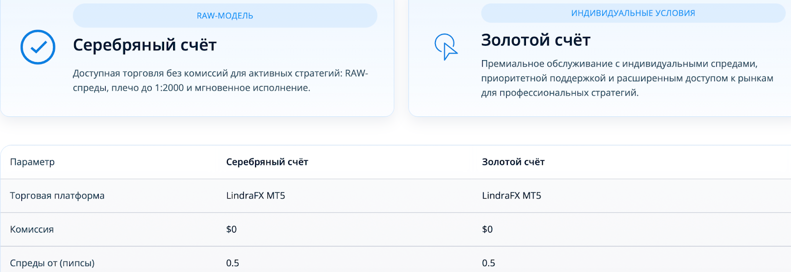 - Базовый — депозит стартует от $250.