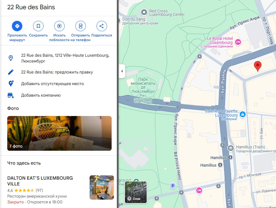 На официальном сайте говорится, что офис расположен на 22 улице Де Бен, 1212 Люксембург. Мы проверили данную информацию и по этому адресу находится ресторан DALTON EAT’S LUXEMBOURG VILLE. Никаких брокерских компаний там нет. Кроме того, отсутствует регистрационный номер компании.