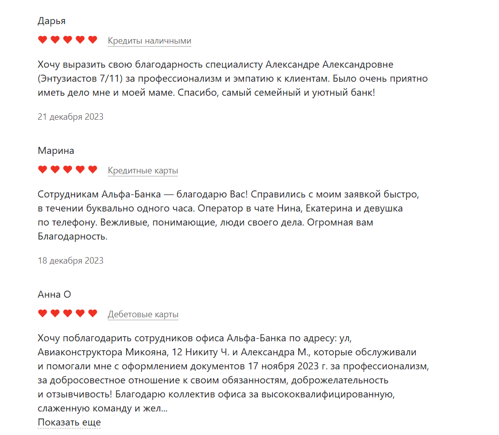 Отзывы клиентов «Альфа-Банка Директ» доступны как на сайте самой компании, так и на множестве альтернативных площадок в сети.