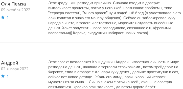 - Владельцы проекта не делятся информацией о реальной опытности команды и проекта по заработку на инвестициях в целом.