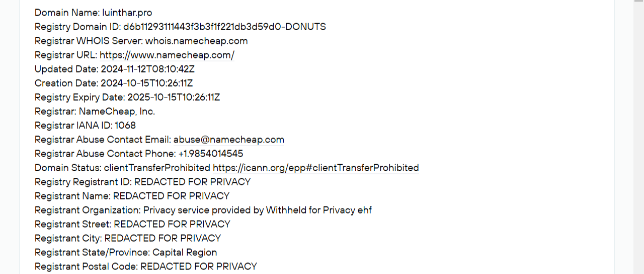 Веб-ресурс был основан в октябре 2024 года. Это противоречит утверждению, что Luinthar Pro создана в 2017 году.