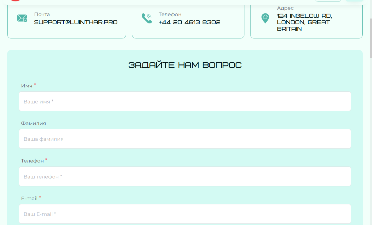 Можно попробовать связаться с брокером через электронную почту – support luinthar pro. Тем более, что компания обещает круглосуточную поддержку 24/7.