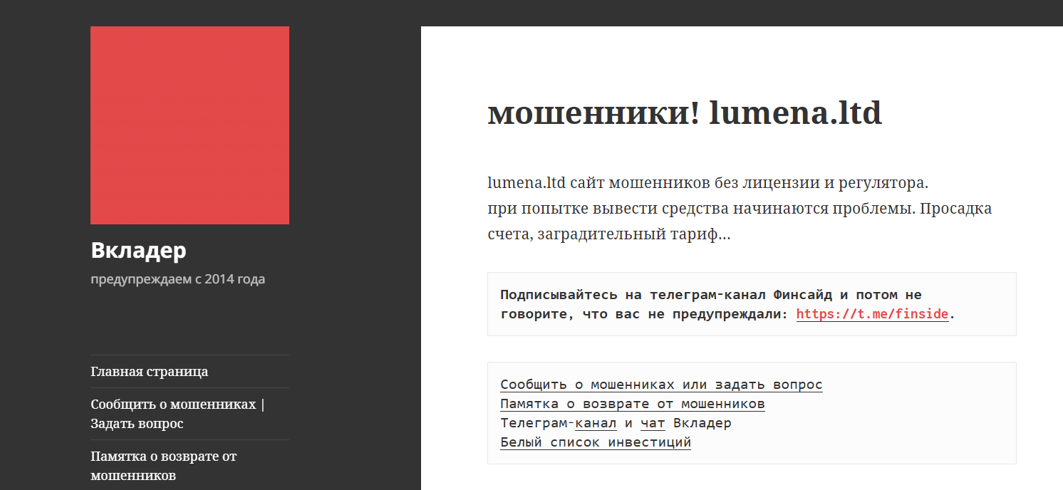 Отзывы пользователей о Lumena ltd сплошь негативные. Люди рассказывают, что вкладывали от тысячи долларов до десятков тысяч евро.