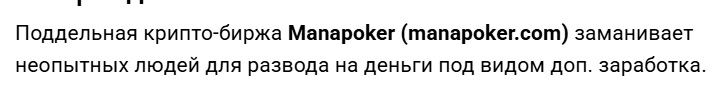 - В сети отзывов о ManaPoker com мало, но все они отрицательные, поэтому сотрудничество несет высокие риски, а вложенные средства можно потерять.