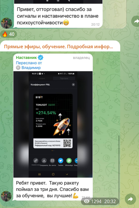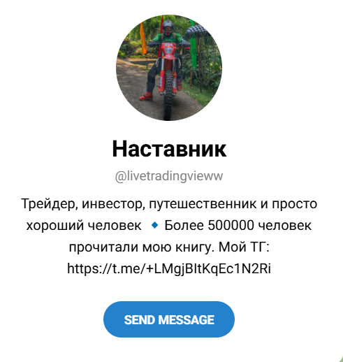 Админ группы в телеграмм-канале называет себя «Наставник» и описывает себя как «трейдер, инвестор, путешественник и просто хороший человек».