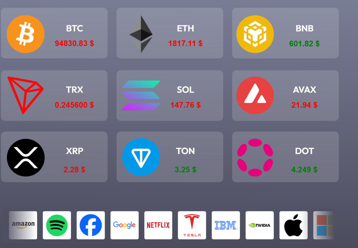 На апрель 2025 года торговая платформа не предоставляет полный список условий торговли, однако дает небольшие сведения о поддержке акций и криптовалют. На главной странице можно встретить данные о том, что проект дает торговать популярными монетами, а также активами ведущих компаний США.