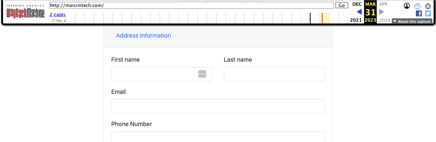 На сайте валютного брокера «Марсинитеч» указано, что компания начала работу в 2017-ом году. Чтобы в этом убедиться, мы запросили снимки сайта marcinitech com из WayBackMachne.