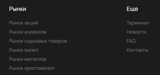 Брокер предоставляет инструменты для торговли на всех популярных рынках. Например, на нем возможно трейдить: валютами, криптовалютами, сырьем, акциями и индексами.