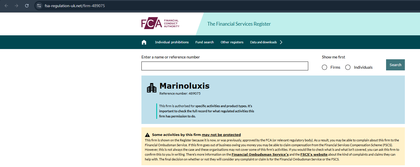 - Компания MarinoLuxis работает вне закона, что говорит о возможных проблемах после пополнения депозита и трудностях с возвратом средств.