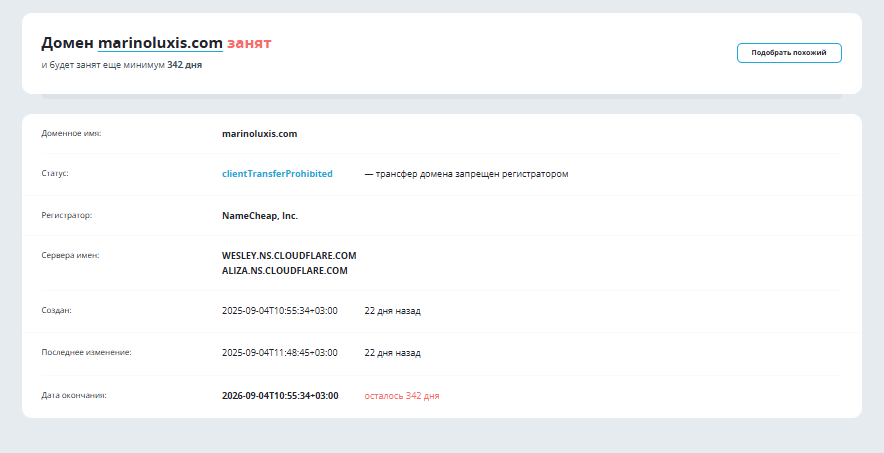 Домен компании зарегистрировали в сентябре 2025 года, на момент подготовки материала он используется в течение 22 дней.