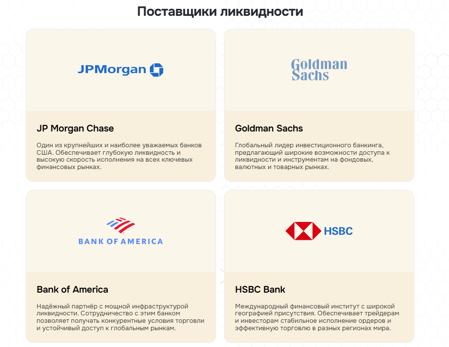 Утверждается, что платежеспособность компании обеспечена за счет сотрудничества с крупными финансовыми фондами. На сайте перечислены партнеры брокера, но эти сведения также не подтвердились.