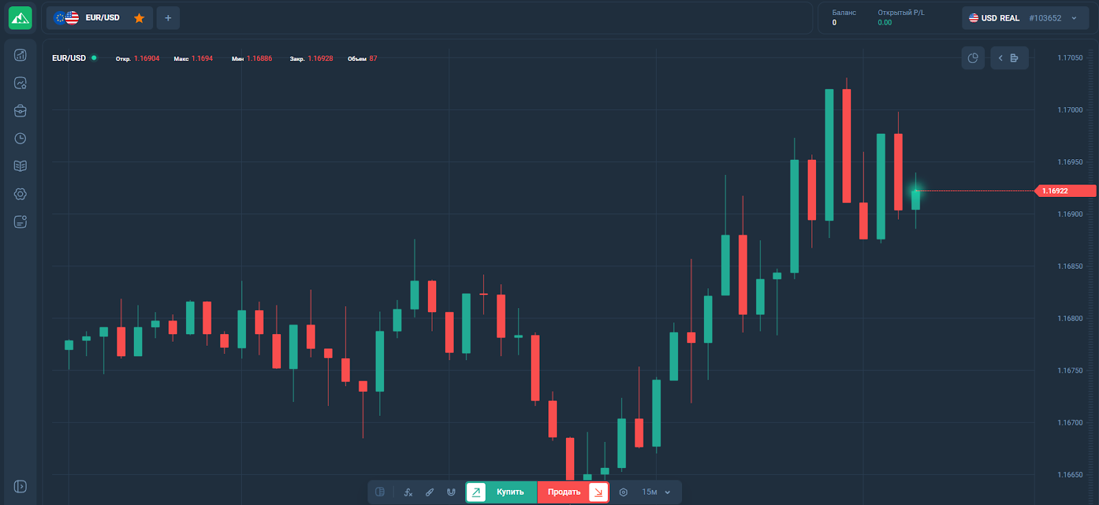 Интерфейс терминала кажется минималистичным, тут нет следов заявленных инструментов и большого количества доступных активов.