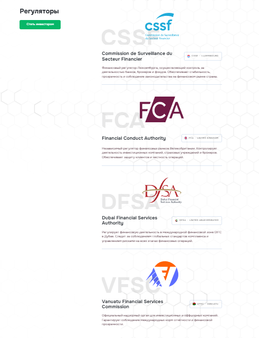 Заявлено, что безопасность клиентов гарантирована за счет лицензий от международных регуляторов. Есть ссылки на выписки от 4 надзорных органов, в том числе из надежных юрисдикций.Изучая выписки MarinoLuxis, мы заметили некоторые странности – например, домены сайтов регуляторов. Ссылка с портала брокера ведет на адрес fsa-regulation-uk net, который не связан с FCA и является фейковым.
