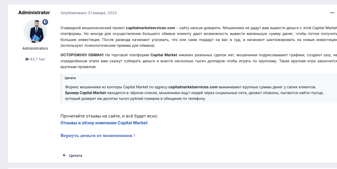 Проверка работы брокера Capital Marketservice: отзывы клиентов, что предлагается пользователям проекта Capitalmarketservices