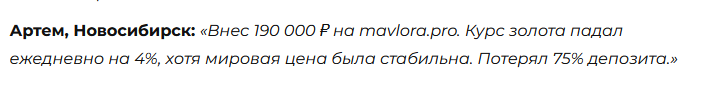При анализе брокера mavlora pro были выявлены следующие признаки мошенничества: