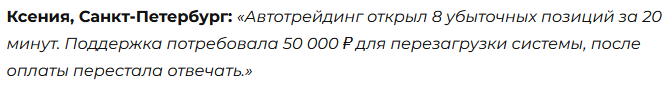Среди негативных отзывов о бирже Mavlora встречаются комментарии о плохой работе терминала, частом автоматическом открытии убыточных сделок. В такой ситуации техподдержка требует от трейдера перевод дополнительных средств для разблокировки системы, после чего перестает отвечать. Такие жалобы можно часто увидеть в отзывах о mav lora co, публикуемых на специализированных форумах.