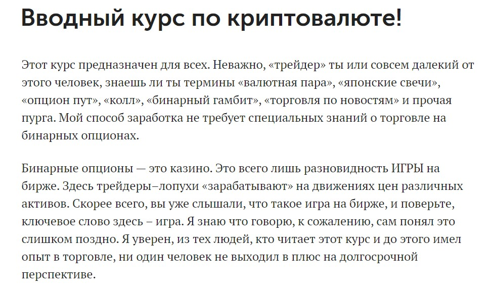 Изучая особенности по системе трейдинга Максима Чернова, понятно, что торговать придется и криптой. Автор заявляет: базовые материалы освоят все, независимо от опыта в трейдинге и инвестициях. Весь процесс Макс представляет как увлекательную игру, упоминая, что мало кто добивается плюса в профессиональном трейдинге на долгосрочной перспективе.