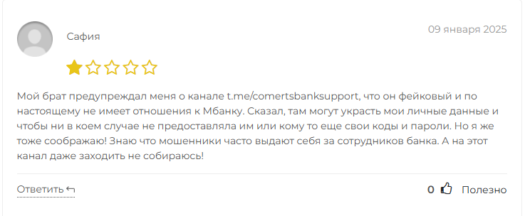 На официальном сайте MBank указано, что они не ведут деятельность в Телеграме. Но появились пользователи, выдающие себя за сотрудников «М Банк» в ТГ. Они могут пытаться обмануть клиентов.